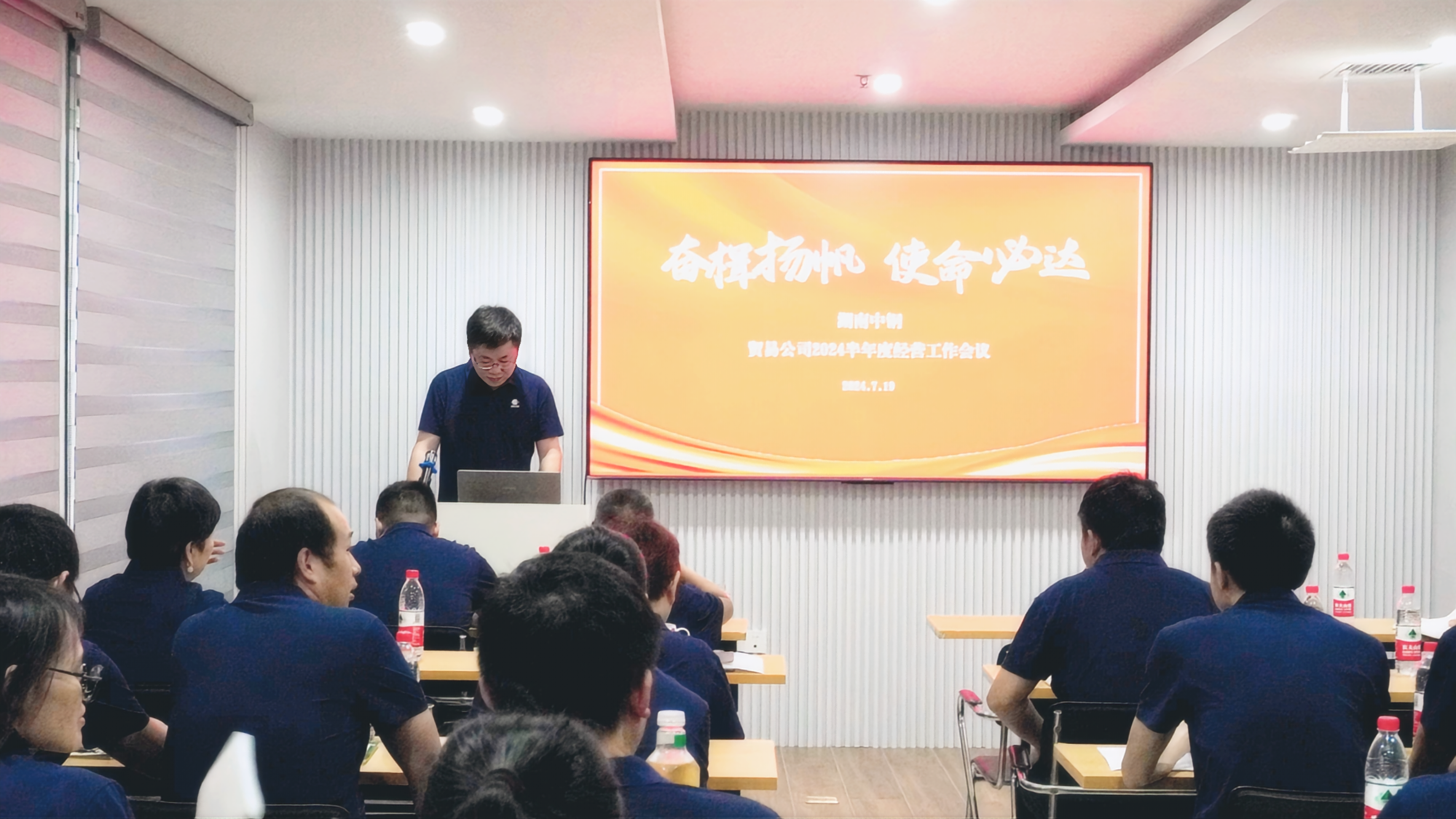 2024年7月19日,湖南中钢贸易公司在集团总部大会议室召开2024年半年度经营工作会议。集团公司总部领导、总部职能部门负责人、贸易公司全体人员参加了此次会议。