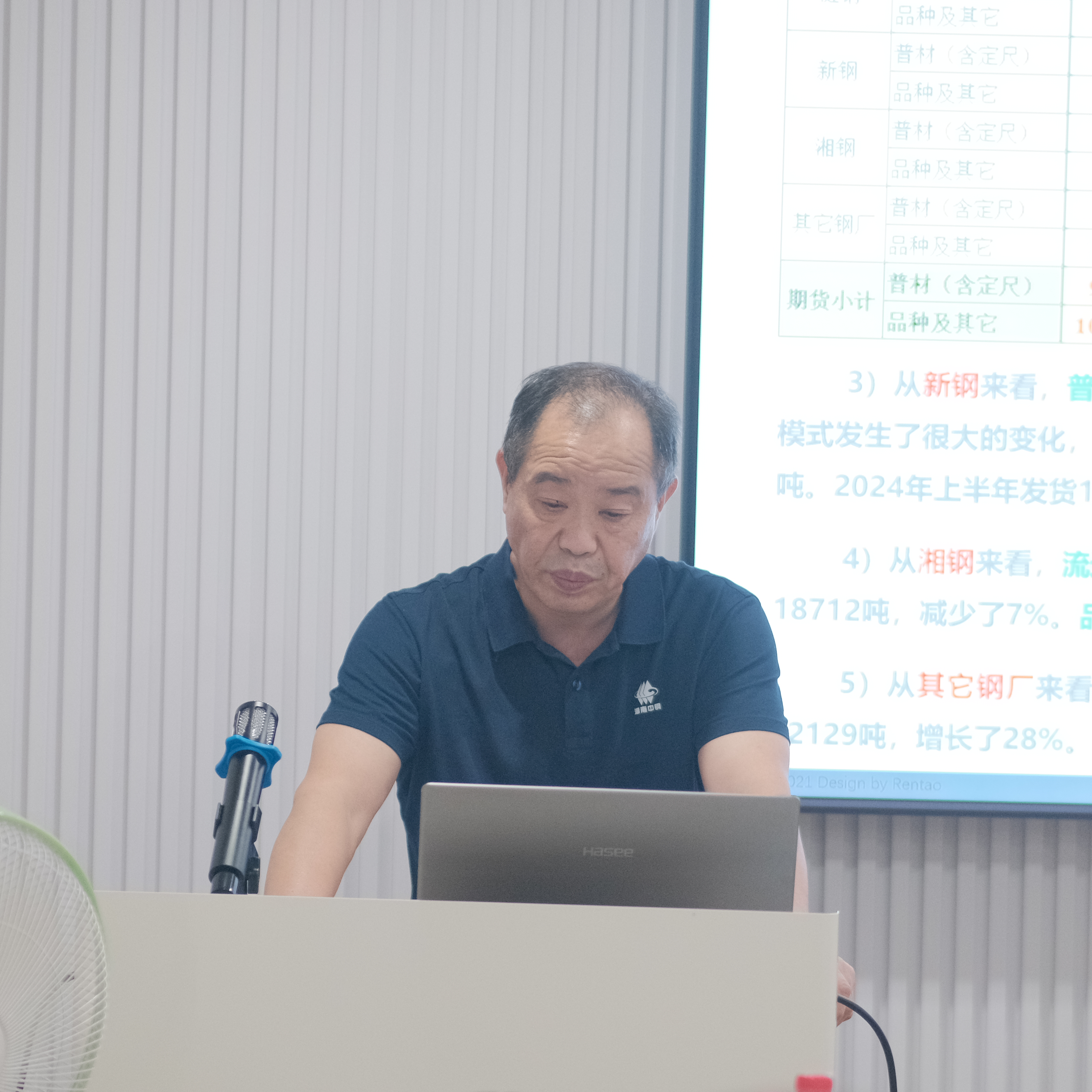 会上,贸易公司销售中心、采购中心、财务中心分别就上半年工作完成情况做了总结,指出自身工作过程中的工作亮点和不足之处,并就下半年工作做出了具体工作计划。集团副总经理兼销售中心总经理罗晓军对贸易公司销售情况进行总结分析:在市场需求严重不及预期的情况下,各销售部门积极“扩销量、控库存、催回款、拓市场”,取得了一定的成绩。集团副总经理兼采购中心总经理罗志勇对贸易公司采购情况进行总结分析:坚持以销定采持续保供,坚持差异化采购,开发新钢种新牌号,拓展采购渠道,优化仓储物流,积极推进采购工作高质、高效运行。