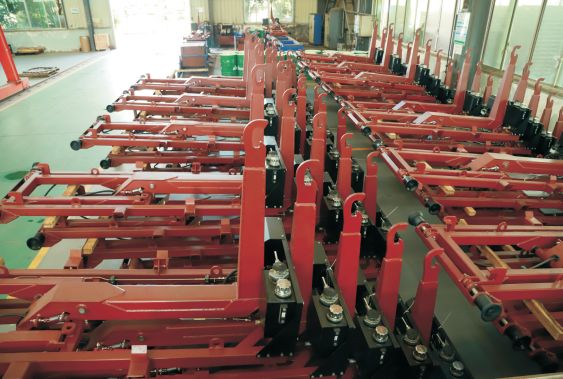 孙行长一行首先参观了武陵机械生产车间,董事长岳俊峰边走边介绍目前武陵机械的生产经营情况,孙行长对武陵机械自主研发生产的拉臂勾很感兴趣,并询问了它的价格及销售情况,听闻董事长介绍一台26吨的拉臂钩售价16万元时,表示赞叹!