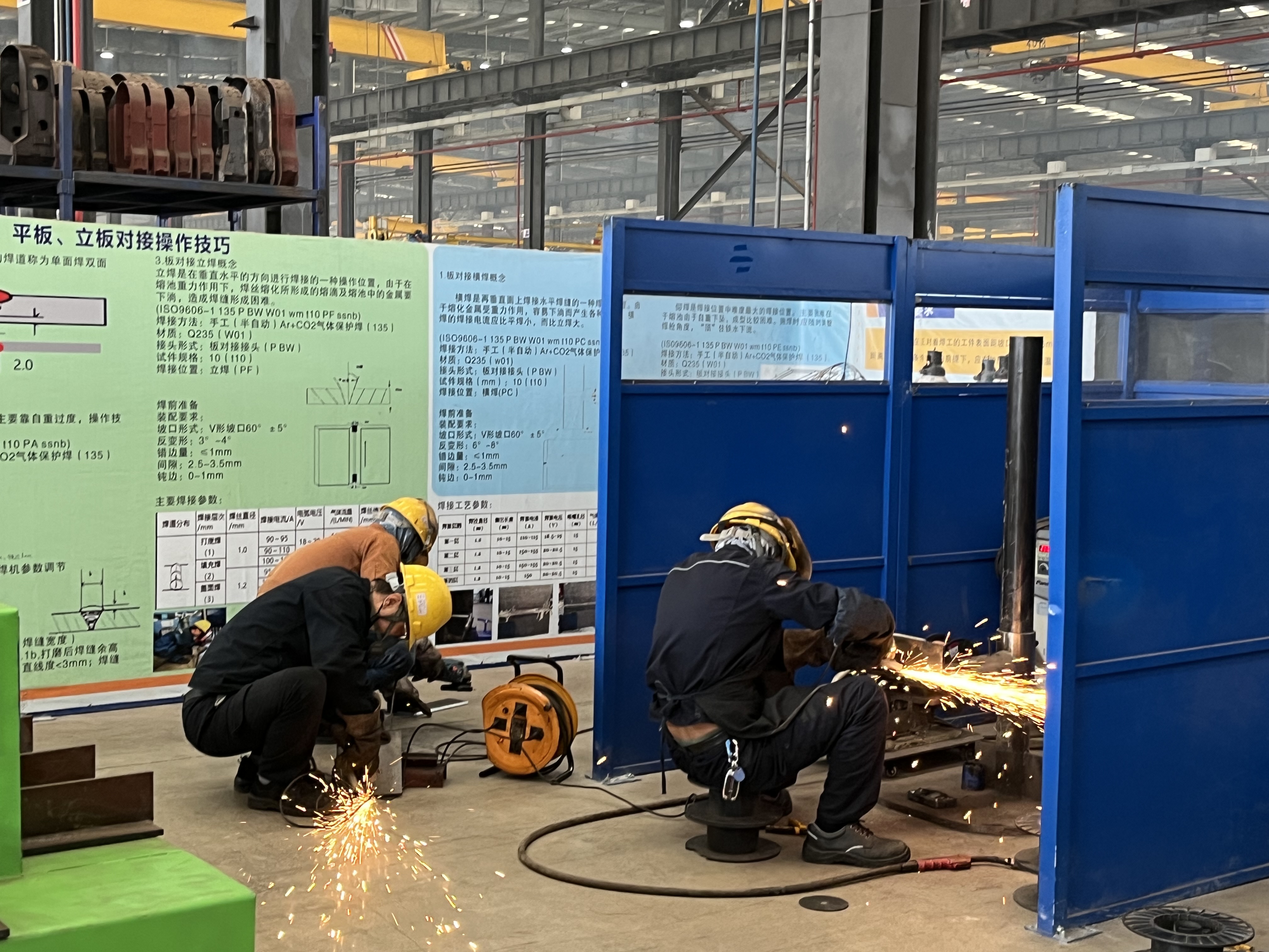 次日,在生产车间的培训中心进行了焊接实操考试,师傅们个个聚精会神,全情投入,四个考试点焊花飞溅、弧光闪耀,焊接师傅们凭借扎实的基本功和娴熟的专业技能出色的完成了各项考试科目,现场监考人员全程巡考,并根据焊前准备、焊接基本操作、焊缝内部质量、焊缝外观、完成时间和安全生产操作对参考人员进行打分。